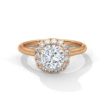 Cushion lab diamond ring with Halo made with 2 carat cushion lab diamond and 0.27 ct side lab diamonds in 3.30 grams of 18k gold.